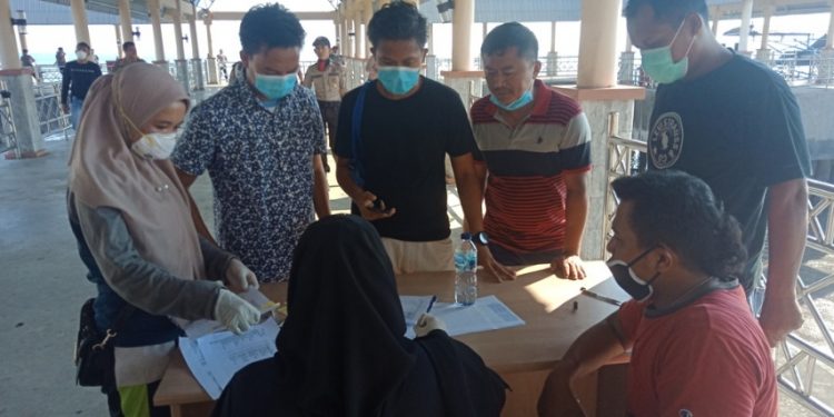 Setelah mendapat pengarahan tentang karantina mandiri dari jajaran Polres Bengkalis, disemprot disinfektan serta pengukuran suhu tubuh oleh petugas Dinas Kesehatan, mereka langsung didata olem tim gabungan dari Polres Bengkalis, Dinas Kesehatan, dan Dinas Perhubungan Kabupaten Bengkalis.