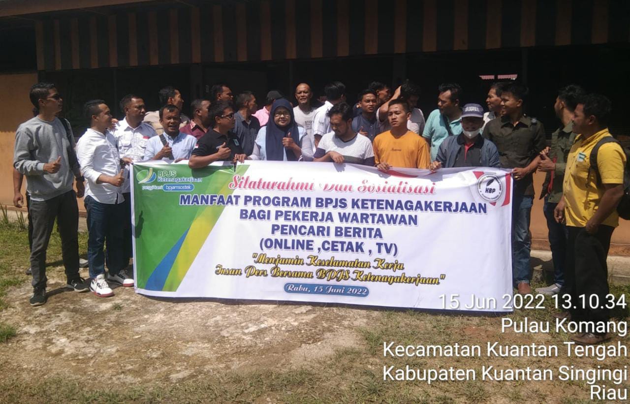 BPJS ketenagakerjaan Kabupaten Kuansing jalin silaturrahmi sekaligusb sosialisasi program BPJS kepada para pekerja pers. Baik media online, media cetak, maupun televisi. Sosialisasi yang dilaksanakan di Lesehan Naniki, Sungai Lintang, kecamatan Sentajo Raya. Kuansing, Rabu (15/6/2022) memaparkan