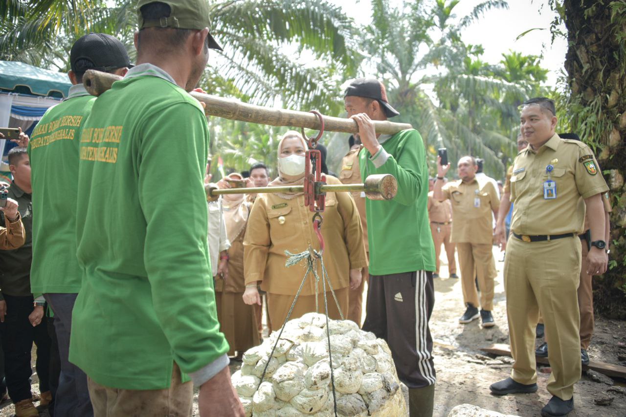 BATHIN SOLAPAN (Riaulantang) – Bupati Bengkalis Kasmarni membuka acara pencanangan gerakan pemasaran Bokar (Bahan Olah Karet) bersih, Senin, 7 November 2022 di Desa Petani Kecamatan Bathin Solapan.