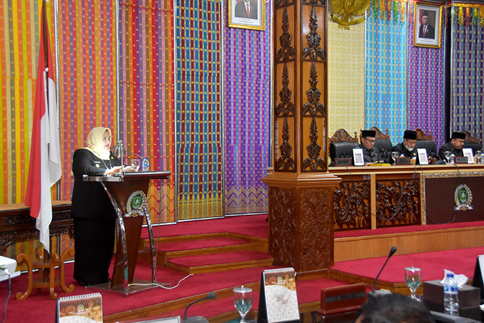 Tujuh fraksi di DPRD Kabupaten Bengkalis memberikan pandangannya dan Bupati Kasmarni menjawab serta menjelaskan dari pandangan lembaga legislatif di Negeri Junjungan ini.