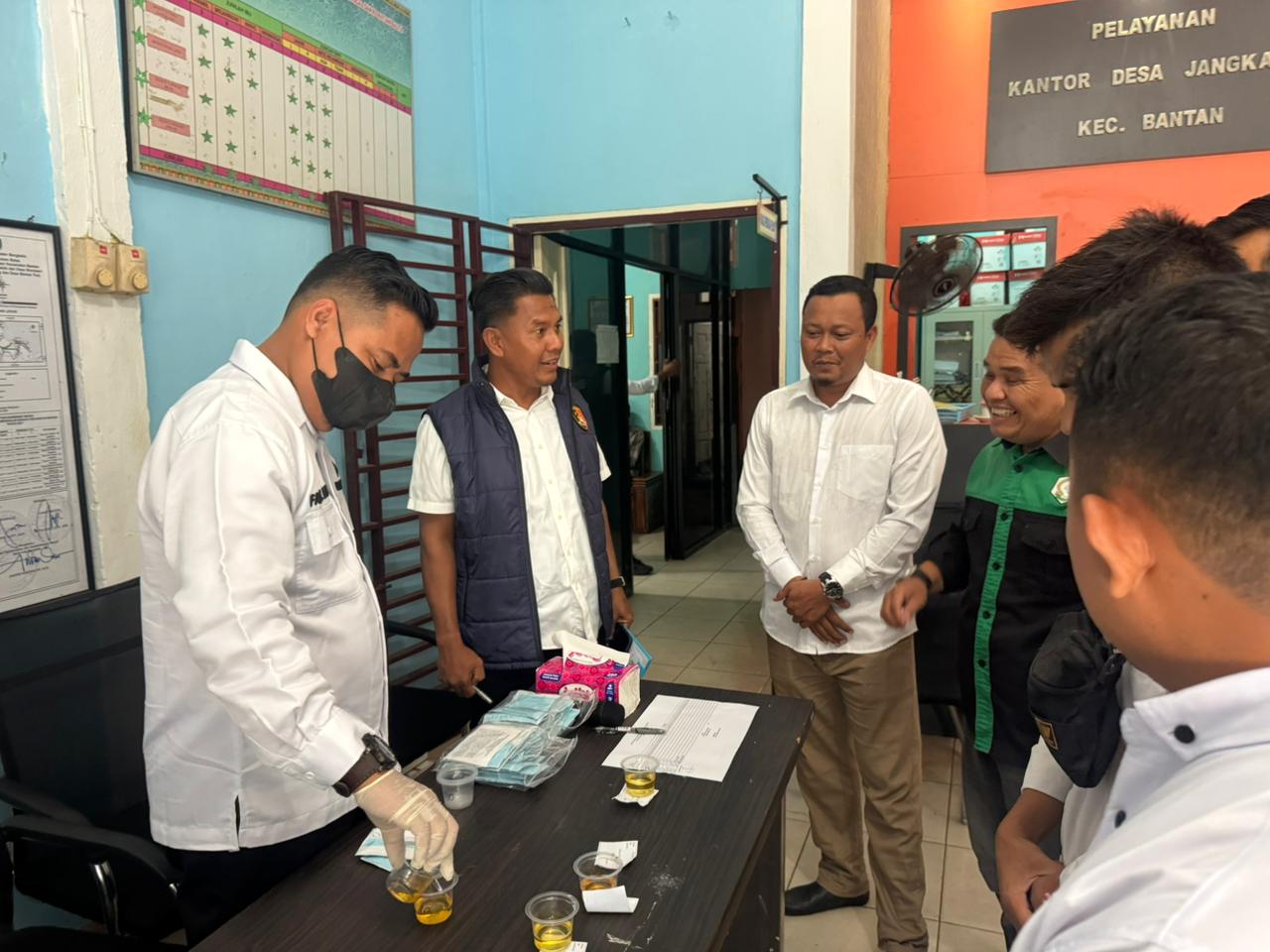 Bantan (Riaulantang) – Upaya pemberantasan penyalahgunaan narkotika di lingkungan pemerintahan terus digencarkan. Kali ini, kegiatan pengecekan urine secara mendadak (sidak) dilakukan di Kantor Desa Jangkang, Kecamatan Bantan, Kabupaten Bengkalis, pada Rabu (22/04/2026) sekitar pukul 09.00 WIB.