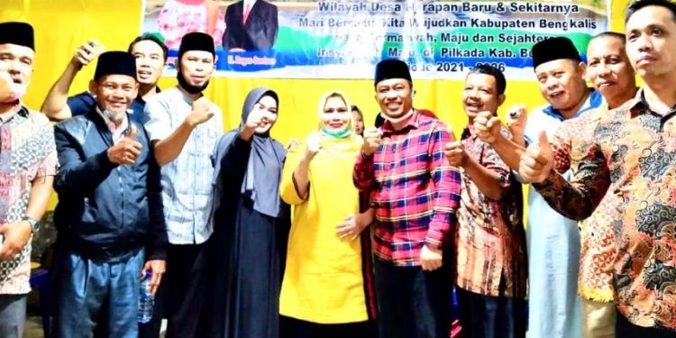 “ Kami pasangan KBS berkomitmen ikhlas membangun Kabupaten Bengkalis lebih bermarwah maju dan sejahtera. Program dan kegiatan fokus untuk memajukan desa desa, bangun infrastruktur dan ekonominya” kata Kasmarni di hadapan warga desa.