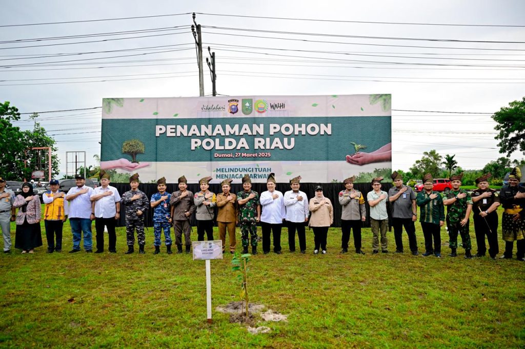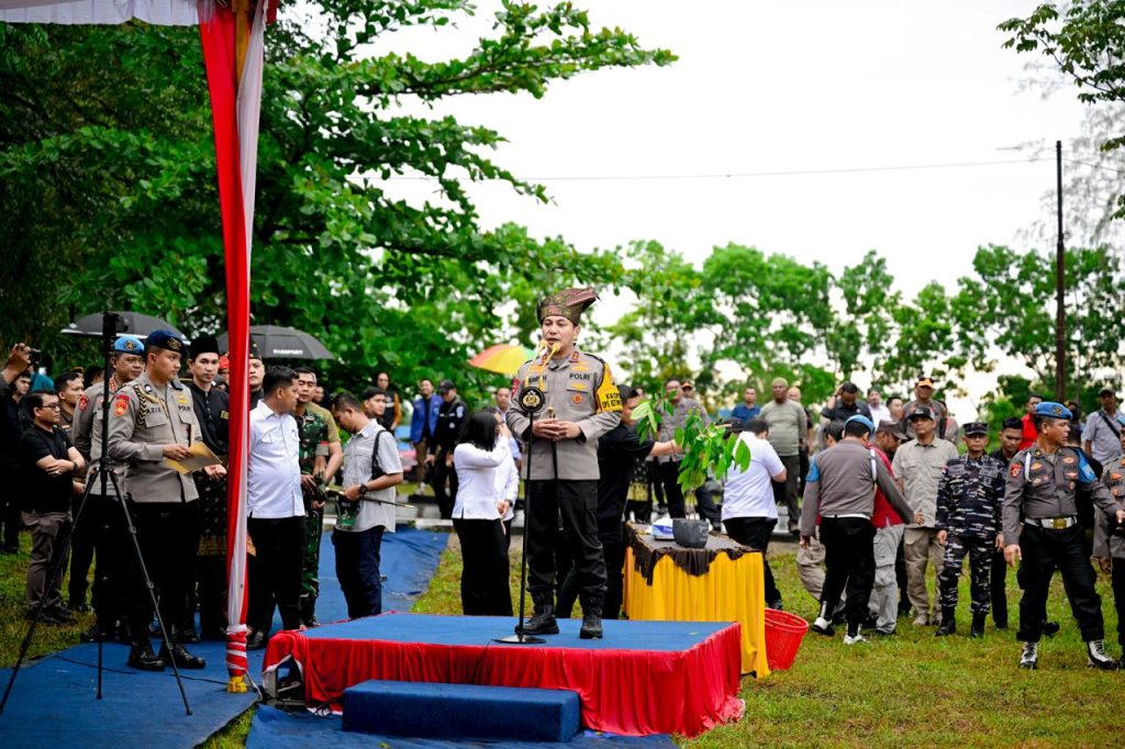 Kapolda Riau dalam sambutannya menyampaikan bahwa menanam pohon bukan sekedar menanam kehidupan, tetapi juga menjaga kelestarian alam, melindungi tuah negeri dan merawat Marwah budaya.