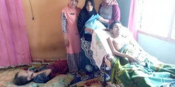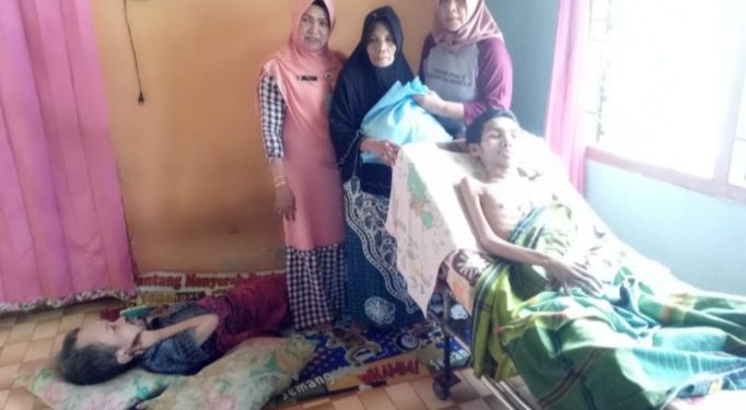 PEKANBARU (Riaulantang)- Zainun (68) hanya bisa menatap dua anak laki-lakinya dengan mata berkaca-kaca. Hendra (38) yang lumpuh total sejak 20 tahun lalu dan Erwin (34) yang menderita hidrosepalus (kepala membesar) sejak lahir. Keduanya tergolek di ruang tamu keluarga, berpuluh tahun lamanya.