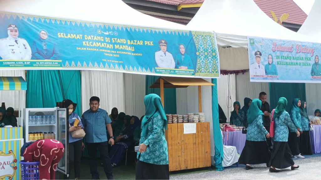 Sementara itu pembukaan Jambore Kader PKK Mandau tahun 2022 ini berbeda dengan tahun sebelumnya. Konsepnya tidak lagi dalam ruangan tapi dilaksanakan di ruangan terbuka. Sejumlah tenda berdiri megah di tengah halaman kantor Camat Mandau lengkap dengan sejumlah stand PKK desa/kelurahan yang menyajikan sejumlah produk UMKM.