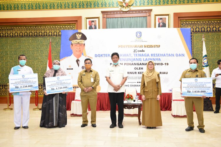 Tanjung Pinang (Riaulantang) – Plt. Gubernur Kepri H. Isdianto menyerahkan Insentif beserta piagam penghargaan kepada Dokter, Perawat, Tenaga Kesehatan dan Penunjang lainnya dalam Penanganan Pasien Covid-19 di RSUD Ahmad Tabib bertempat di Gedung Daerah, Tanjungpinang, Senin (30/3).