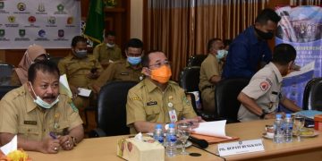 BENGKALIS (Riaulantang)- Plh. Bupati Bengkalis H. Bustami HY, melakukan Video Conference (Vidcon) bersama Camat se-Kabupaten Bengkalis terkait perkembangan penanganan covid-19, Selasa (14/4).