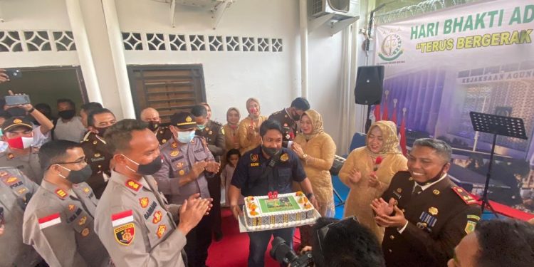Bintan (Riaulantang)- Kejaksaan negeri Bintan sedang merayakan hari Bakti Adhyaksa ke 69 dikantor Kejari Bintan, Rabu (22/7/2020), tiba- tiba Kapolres Bintan datang berikan kejutan kepada Kajari Bintan itu.