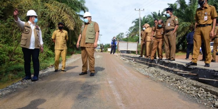 PINGGIR (Riaulantang) – Penjabat (Pj) Bupati Bengkalis H Syahrial Abdi meninjau proyek Peningkatan jalan Gajah Mada Kecamatan Pinggir, Senin (16/11/2020).