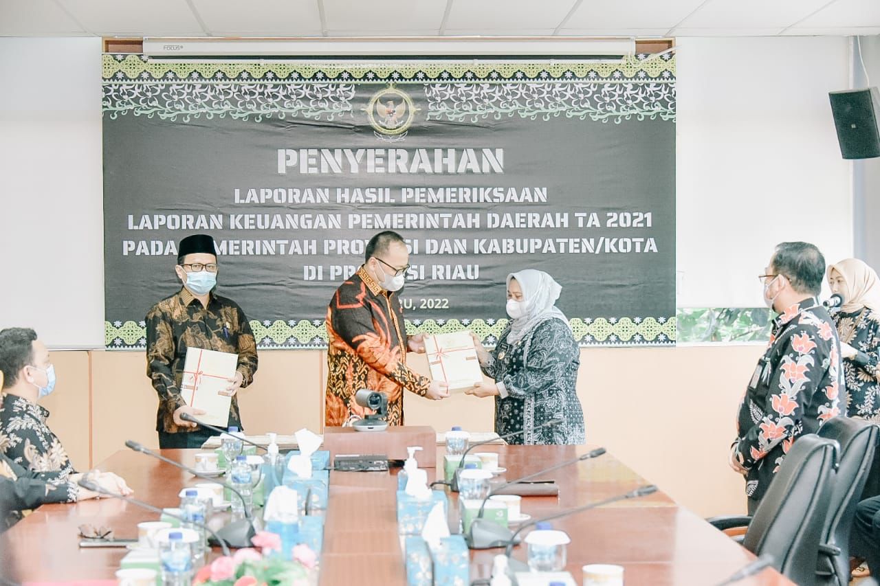 BENGKALIS (Riaulantang)- Pemerintah Kabupaten Bengkalis, kembali meraih Opini Wajar Tanpa Pengecualian (WTP) atas Laporan Hasil Pemeriksaan (LHP) Laporan Keuangan Pemerintah Daerah (LKPD) Kabupaten Bengkalis tahun 2021.