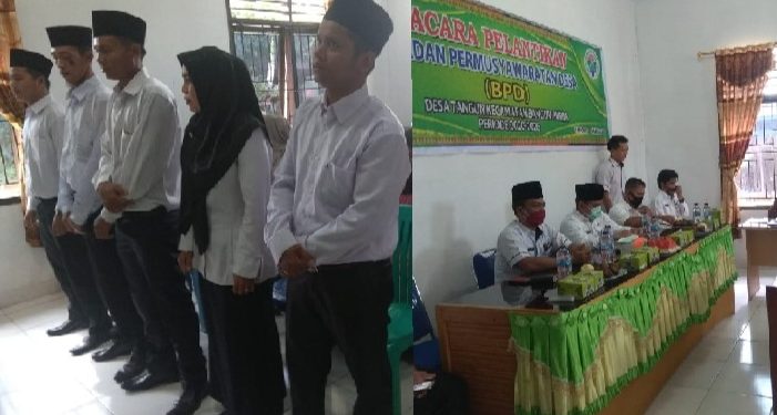 Rokan Hulu (Riaulantang)- Camat Bangun Purba Admiral melantik lima anggota Badan Permusyawaratan Desa (BPD) Desa Tangun Kecamatan Bangun Purba di aula Desa Tangun, Kecamatan Bangun Purba, Kabupaten Rokan Hulu, Rabu (10/06/2020). Kelima anggota BPD yang dilantik masing-masing Sabar Maulana, Labfor Hotnida, Wahidin, Marjohan dan Anta Suheri.