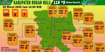 ROHUL (Riaulantang)- Orang Dalam Pemantauan (ODP) di Kabupaten Rokan Hulu sampai Senin (30/03/2020) pukul 15.12 WIB ini berjumlah 1.280. Jumlah ODP ini naik sekitar 12,94 persen dibanding hari sebelumnya. Ada penambahan 226 ODP pada hari ini.