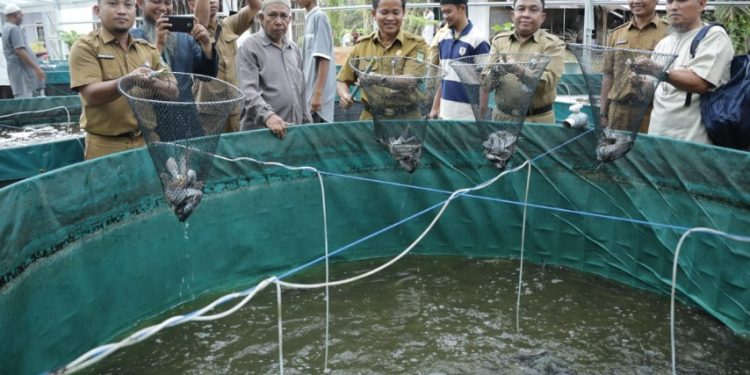Pemda Rohul Budi Dayakan Ikan Lele Sistem BIoflok di Pesantren Manhajusalikin