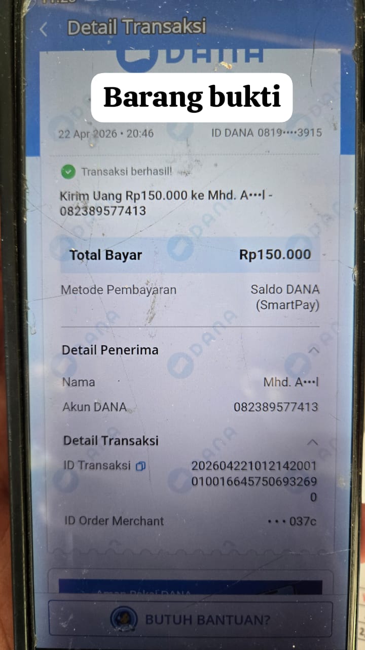 Dari tangan pelaku, polisi mengamankan sejumlah barang bukti berupa satu unit handphone, satu kotak handphone, serta bukti transfer. Berdasarkan hasil pemeriksaan, pelaku mengakui perbuatannya.