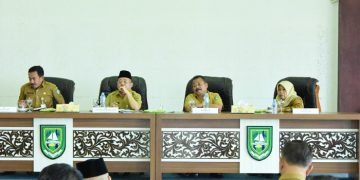 Plh Bupati didampingi Asisten Administrasi Umum H T Zainuddin, Asisten Perekonomian dan Pembangunan H Heri Indra Putra dan Asisten Pemerintahan dan Kesejahteraan Hj Umi Kalsum.