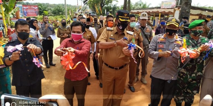 ROKANHILIR (Riaulantang)- Bupati Rokan Hilir, H Suyatno meresmikan Launching Kampung Tangguh Nusantara Gerakan Jaga Kampung di kawasan PT Salim Ivomas Pratama (SIP) tepatnya di Dusun Palm Jaya, Kepenghuluan Balam Jaya, kecamatan Balai Jaya, Senin (20/7/2020)
