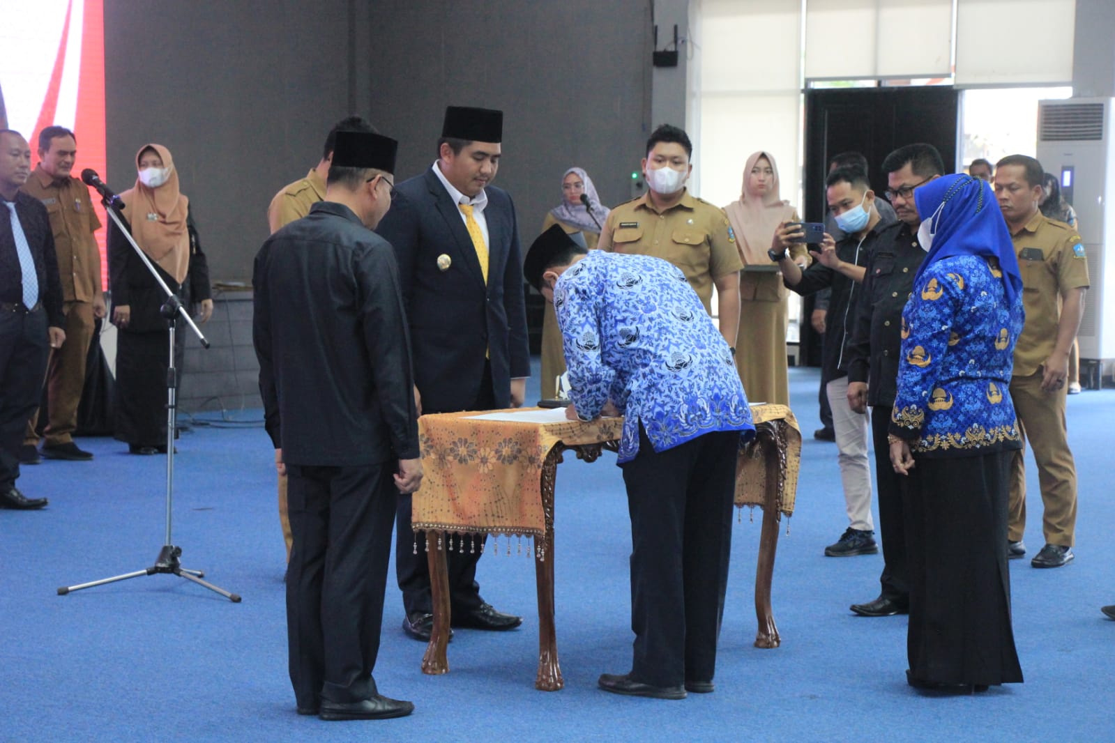 Bintan (Riaulantang)- Plt Bupati Bintan Roby Kurniawan melantik guru dalam penugasan sebagai Kepala Sekolah di Lingkungan Pemerintah Kabupaten Bintan. 28 Guru dilantik dalam tugas Kepala Sekolah itu dilantik di Aula Kantor Bupati Bintan, Selasa (05/07)