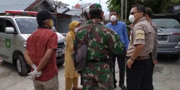 DURI (Riaulantang)- Kediaman Almarhumah NI (59) satu dari dua Pasien Dalam Pengawasan (PDP) Covid-19 yang meninggal dunia di RSUD Mandau, pertengahan April 2020 lalu, Sabtu siang (02/05/2020) tadi tampak ramai didatangi sejumlah petugas. 1 Unit ambulance, 1 unit mobil patroli Polsek Mandau dan petugas yang mengunakan Alat Pelindung Diri (APD) lengkap nampak di sekitar kediaman almarhumah. Usut punya usut ternyata kedatangan sejumlah petugas ini untuk melakukan tracking kepada keluarga yang kontrak erat dengan almh lantaran hasil swab almh positif Covid-19