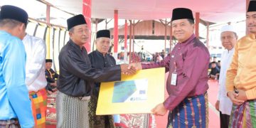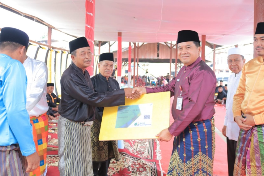 Sementara itu Sekretaris Daerah Rokanhulu H.Abdul Haris, S.Sos.M.Si sebelum memulai sambutannya, terlebih dahulu menyerahkan secara simbolis SK RW dan RT Desa Rambah Hilir, sekaligus BPJS Ketenagakerjaan Bagi Datuk Adat LAD Rambah Hilir.